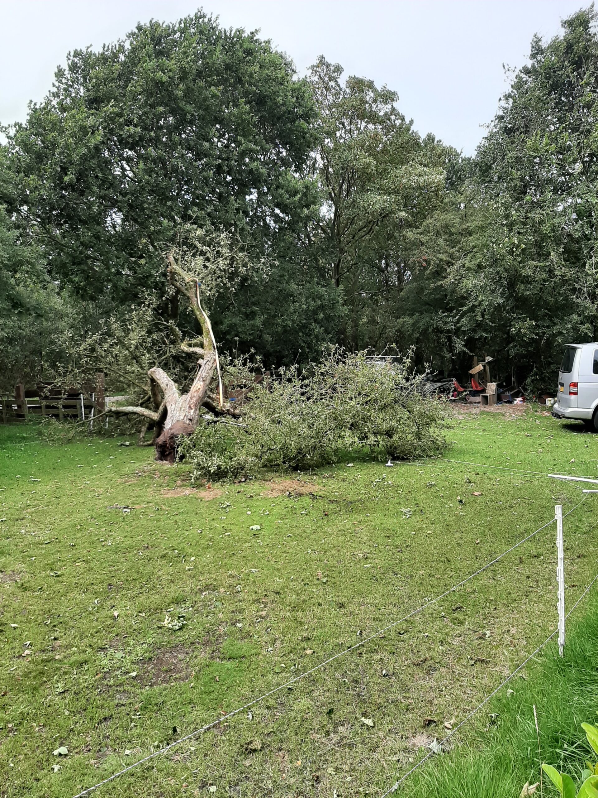 Buiten is er altijd werk te doen zoals het verwijderen van een omgevallen boom na een storm. Onkruid en bladeren verwijderen, de bomenwal netjes houden. De voorraad hooi bijvullen.