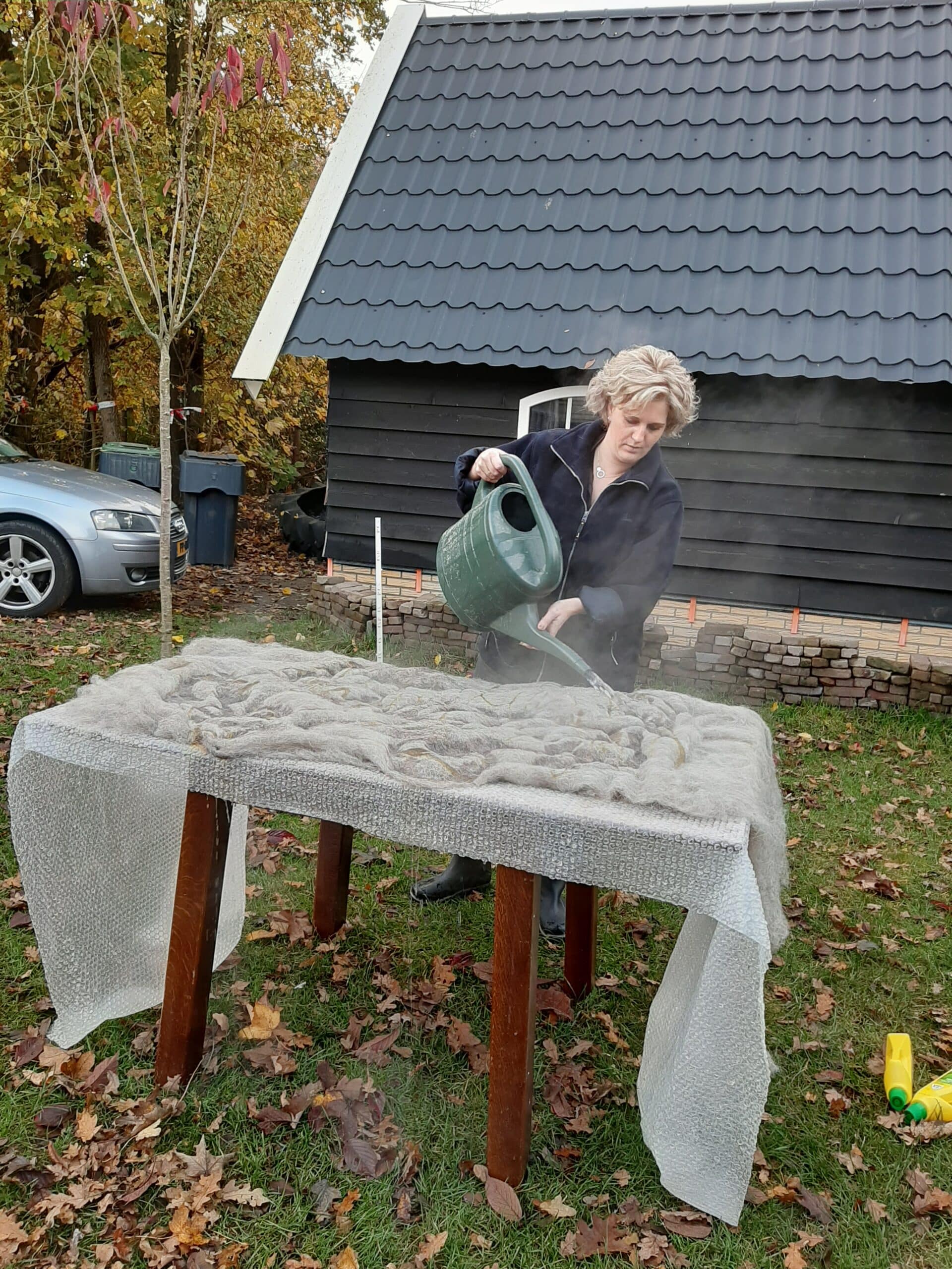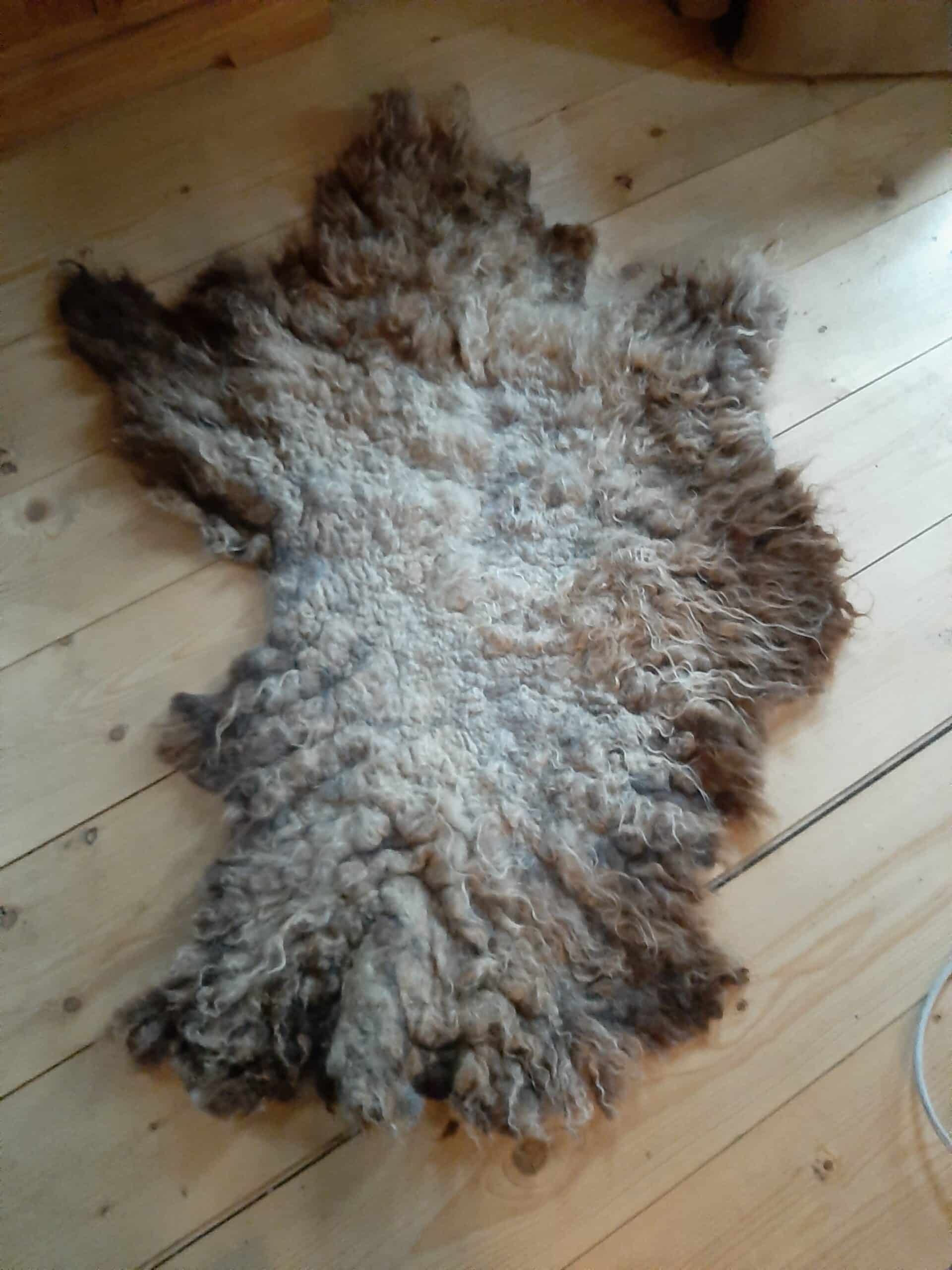 Creatief bezig zijn kan ook, hier is een kleed gemaakt van een schapenvacht.